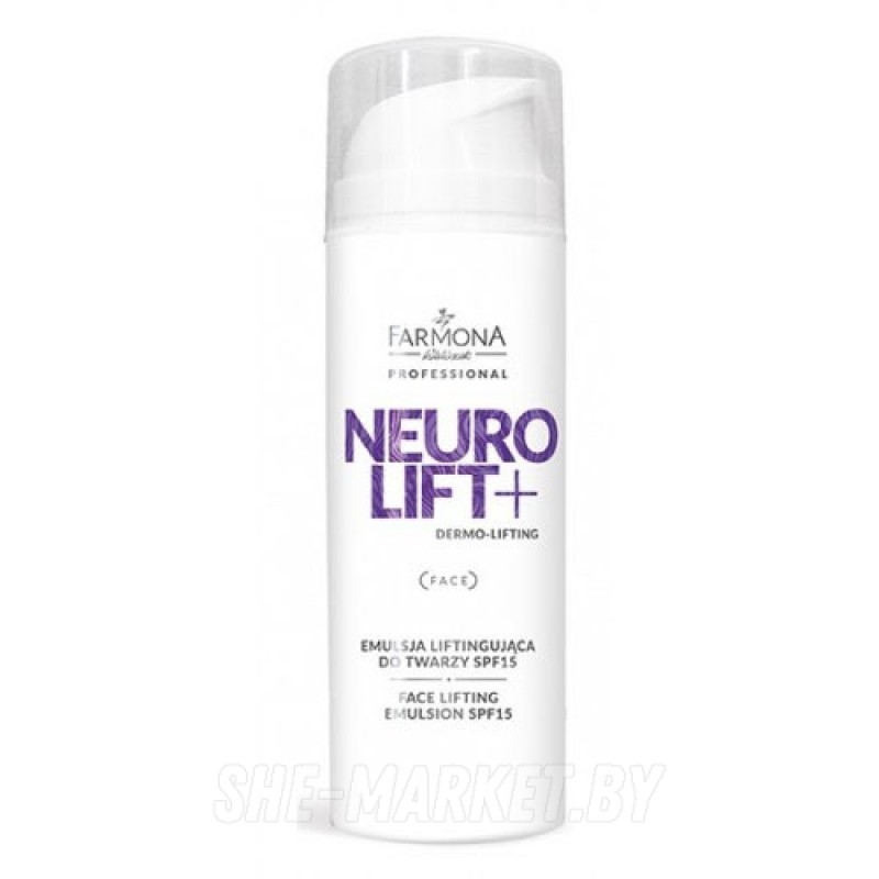 Для женщин в возрасте от 40 лет, SPF 15.Крем-лифтинг Neurolift Lifting Emulsion от бренда Farmona обеспечивает видимый, многоуровневый эффект сглаживания кожи, укрепляет и поддерживает структуру кожи, стимулирует выработку коллагена, уменьшает морщины, останавливает процесс их формирования и углубления. Имеет защиту от солнечных лучей SPF15. Neurolift + является специализированной комплексной линией серии Dermo. Ее основной задачей является улучшение гладкости и упругости кожи, а также регенерация кожи и поддержание данного эффекта. Линия предназначена для женщин в возрасте от 40 лет, которые хотят эффективно и быстро улучшить состояние своей кожи.РЕЗУЛЬТАТ:Эмульсия лифтинг от бренда Фармона омолаживает, восстанавливает и защищает кожу.ПРИМЕНЕНИЕ:Небольшое количество крема нанести на очищенную кожу лица и шеи, избегая области вокруг глаз, нежно массировать.