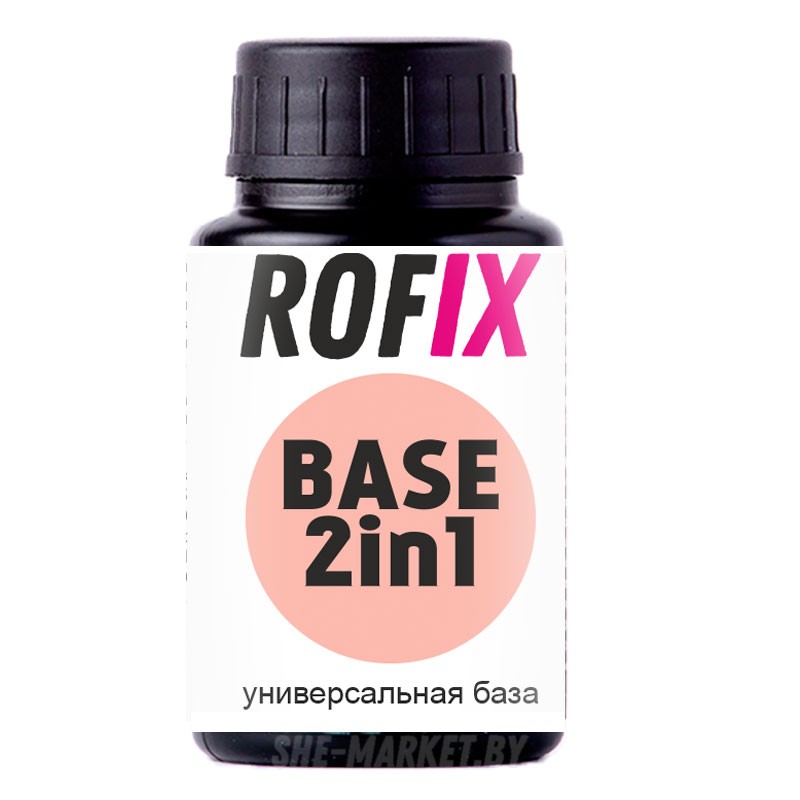 Rofix Base 2 in 1 - прозрачная каучуковая база.ИСПОЛЬЗУЕТСЯ ТОЛЬКО В КАЧЕСТВЕ ПОДЛОЖКИ!• Высокая адгезия (сцепка с другими материалами) эффект двухстороннего скотча.• Кислотная каучуковая база pH3• Средне-густая консистенция, что дает возможность покрыть сразу все ногти без затеков. • Сушка в лампе беспрерывной полимеризации 1 минута, большие пальцы 2 минуты. • Эластичная после полимеризации. • Идеально подходит в качестве подложки на гипергидрозные ручки. • Можно использовать без праймера.