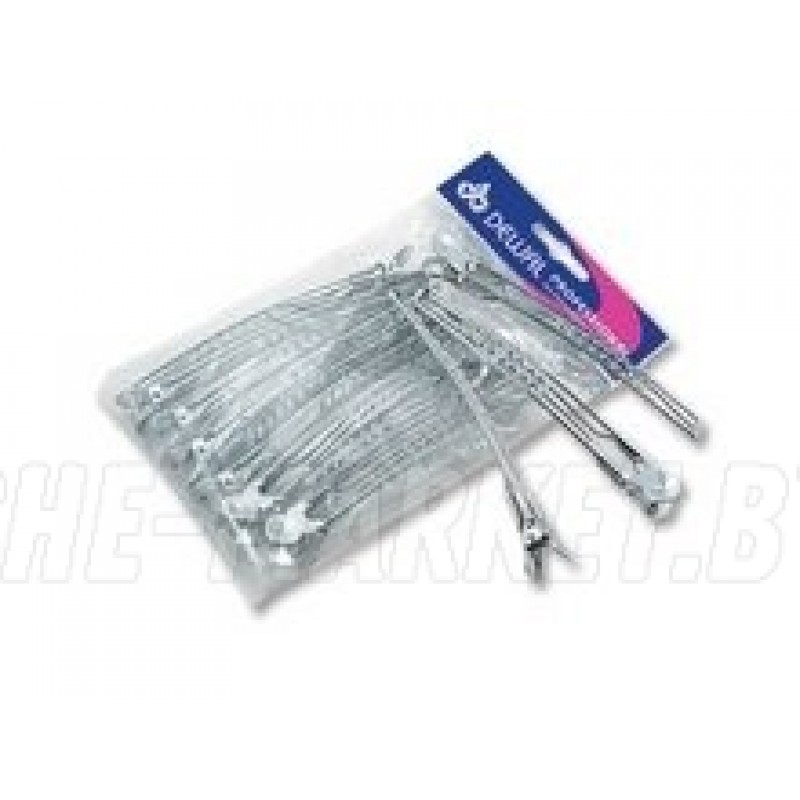 Зажим для волос металл, 10 см, 12 шт/уп.Зажим большой, металл, Dewal CL2401Удобный профессиональный зажим для фиксации волос. Используется при осуществлении самых разнообразных парикмахерских процедур. Приспособление из металла имеет высокую прочность и идеально подходит для многократного применения. Зажим станет идеальным решением для повседневной работы парикмахера, когда требуется проводить целый ряд самых разнообразных действий с волосами, требующим их разделения на отдельные сектора для более качественной работы.Применение профессиональных зажимов для волос значительно облегчает работу парикмахера, позволяет более комфортно и быстро осуществлять окраску, стрижку, а также укладку волос. Благодаря оптимальному размеру зажима можно справиться даже самыми непослушными волосами – надежно закрепить их у основания , не травмируя кожу головы.Зажим имеет продуманный дизайн и позволяет быстро захватывать каждую прядь, выполняя любые парикмахерские действия более комфортно. Зажим зн