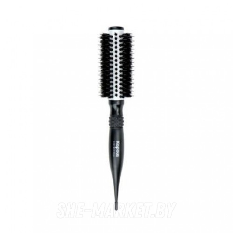Ручка (рукоятка) - термостойкая пластмасса, с прорезиненным кольцом и заостренным хвостом для отделения прядей.Рабочая поверхность - основа алюминиевая, ворс смешанный - пластиковые штифты с натуральной щетиной.