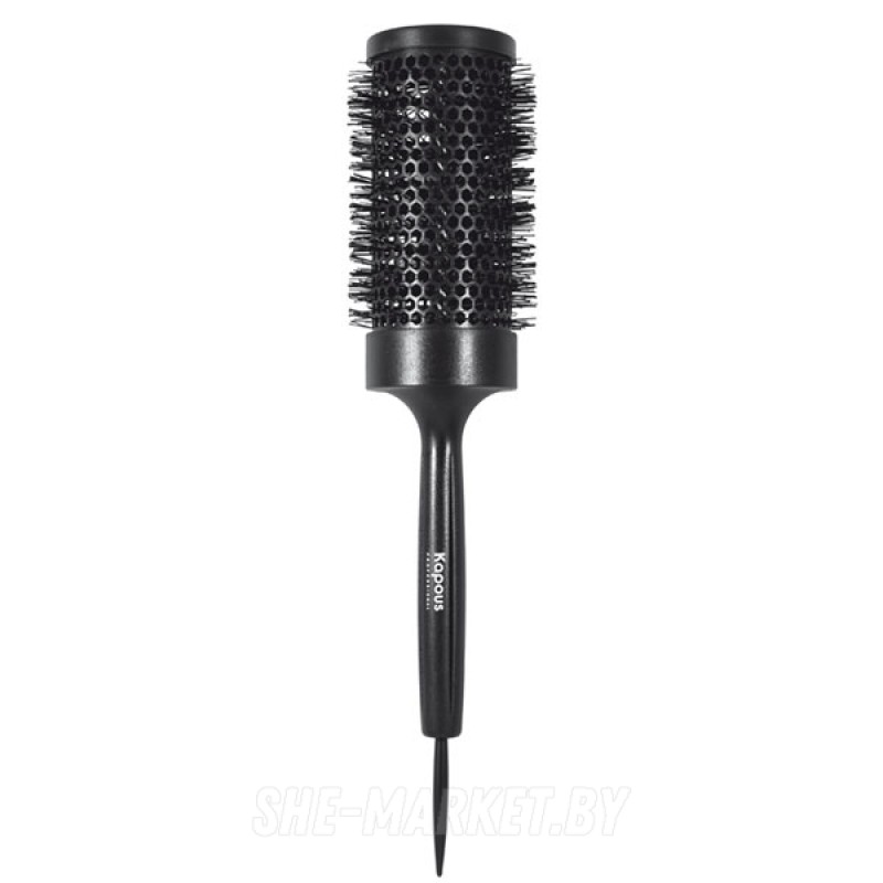 Брашинг с керамическим покрытием с наконечником «Kapous».Ручка (рукоятка) – пластмасса, с пластиковым наконечником. Рабочая поверхность – алюминий с керамическим покрытием. Нейлоновая щетина.