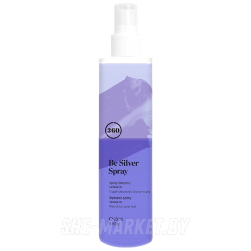 Антижелтый двухфазный несмываемый спрей-кондиционер для светлых волос 360 Be Silver, 250 мл