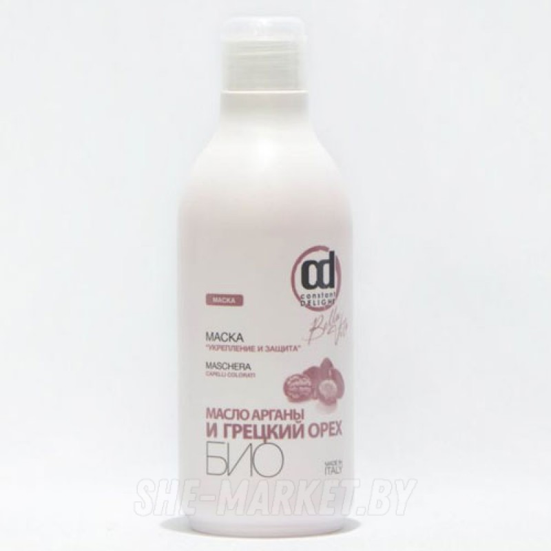 Маска предназначена для окрашенных волос, помогает надолго сохранить насыщенность цвета ваших волос. Биологически активные компоненты: масла Арганы и грецкого ореха проникают глубоко в структуру волос, обладают сильными успокаивающими, противовоспалительными и общеукрепляющими свойствами. Служат антиоксидантом и помогают сохранить надолго цвет окрашенных волос, защищая их от выгорания. Волосы становятся более послушными, мягкими и шелковистыми.Применение:Нанести маску на чистые, подсушенные полотенцем волосы по всей длине. Выдержать 5-10 минут, затем тщательно смыть. Для надежной защиты средство рекомендовано к использованию 1-2 раза в неделю.