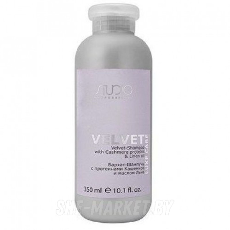 Бархат-Шампунь с протеинами Кашемира и маслом Льна серии «Luxe Care» линии Studio ProfessionalШампунь предназначен для сухих и поврежденных волос. Обеспечивает мягкое очищение и увлажнение. Входящие в состав протеины Кашемира (гидролизованный кератин) придают прочность, смягчают и регенерируют поврежденные участки волос. Ценные свойства масла Льна способствуют максимальному смягчению, интенсивному увлажнению и зеркальному сиянию волос.Применение:Нанести шампунь на влажные волосы. Вспенить в течение 2-4 минут, смыть. При необходимости процедуру повторить. После применения шампуня нанести "Бархат-Бальзам". Подходит для частого использования.