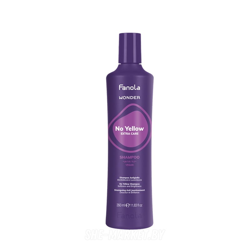 Шампунь Wonder No Yellow нейтрализует нежелательные желтые тона и мгновенно тонизирует волосы, придавая им нейтральные и холодные оттенки. Обогащенная формула придает дополнительную мягкость и блеск.Действующие ингредиенты:Драгон фрукт, богатый антиоксидантами и полиненасыщенными кислотами, которые на волосах идеально подходят для продления цвета и глубокого увлажнения. Содержит ликопин, витамины А, В, С и Е, минеральные соли, антиоксиданты и микроэлементы.Масло марулы глубоко питает и увлажняет волосы благодаря богатому содержанию жирных кислот, витаминов С и Е и омега-6 и 9. Оно богаче антиоксидантами, даже чем аргановое масло.После применения шампуня блондинка вновь обретает свое великолепие, а волосы выглядят здоровыми и сильными. Благодаря экстрафиолетовому пигменту шампунь Wonder No Yellow устраняет желтизну и делает светлые, обесцвеченные или седые волосы блестящими и сияющими.Веганский продукт.СоставAqua (Water), Sodium Laureth Sulfate, Sodium Cocoamphoacetate, Dec