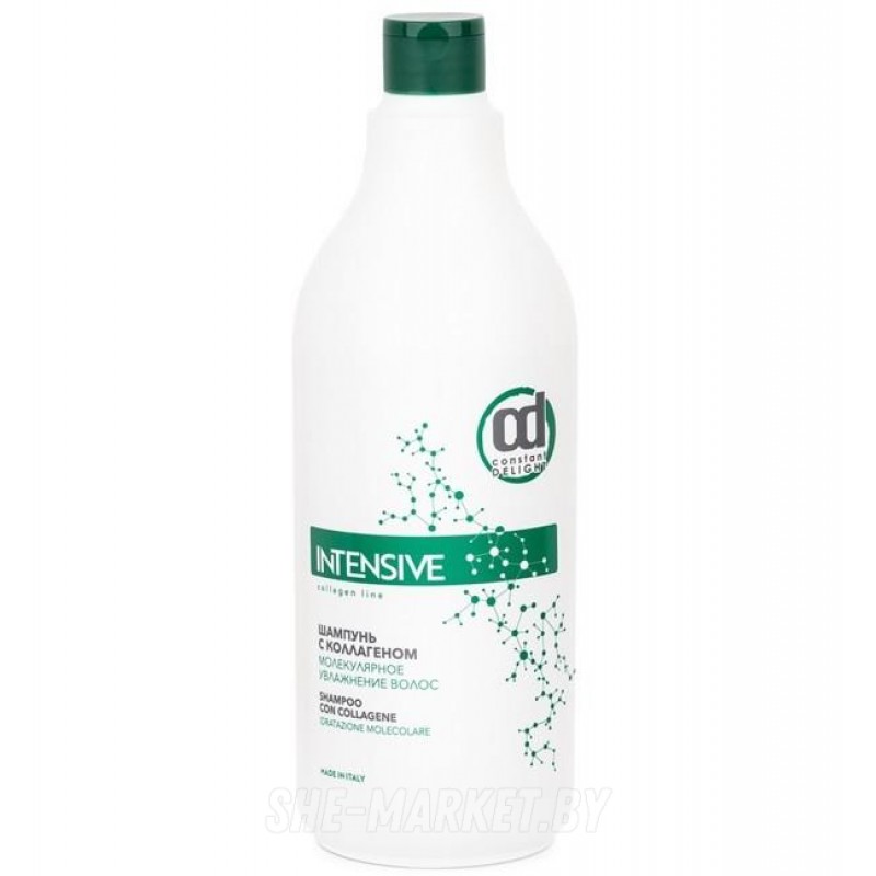 Сухие, хрупкие и часто подвергающиеся тепловому воздействию волосы требуют особенно деликатного очищения и интенсивного увлажнения, обеспечить которые позволяет применение шампуня Constant Delight Intensive Shampoo Con Collagene. Шампунь бережно очищает, ласкает волосы и кожные покровы головы, мгновенно устраняет сухость и надежно защищает от дегидрации.В состав шампуня «Молекулярное увлажнение» от Constant Delight входит коллаген морского происхождения – особенно сильный и ценный компонент, используемый только в профессиональной косметике для волос. Он на клеточном уровне воздействует на структуру локонов, приносит с собой максимальное количество драгоценной влаги и надежно запечатывает ее внутри. Пряди становятся сильными, эластичными и гладкими, приобретают блеск и шелковистость. Коллаген не только прекрасно справляется с сухостью, но и омолаживает. Это идеальное средство, позволяющее сохранить красоту длинных волос и уберечь от сечения кончики.Применение: Немного шампуня