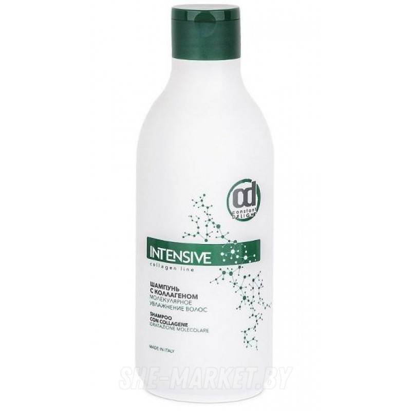 Сухие, хрупкие и часто подвергающиеся тепловому воздействию волосы требуют особенно деликатного очищения и интенсивного увлажнения, обеспечить которые позволяет применение шампуня Constant Delight Intensive Shampoo Con Collagene. Шампунь бережно очищает, ласкает волосы и кожные покровы головы, мгновенно устраняет сухость и надежно защищает от дегидрации.В состав шампуня «Молекулярное увлажнение» от Constant Delight входит коллаген морского происхождения – особенно сильный и ценный компонент, используемый только в профессиональной косметике для волос. Он на клеточном уровне воздействует на структуру локонов, приносит с собой максимальное количество драгоценной влаги и надежно запечатывает ее внутри. Пряди становятся сильными, эластичными и гладкими, приобретают блеск и шелковистость. Коллаген не только прекрасно справляется с сухостью, но и омолаживает. Это идеальное средство, позволяющее сохранить красоту длинных волос и уберечь от сечения кончики.Применение: Немного шампуня
