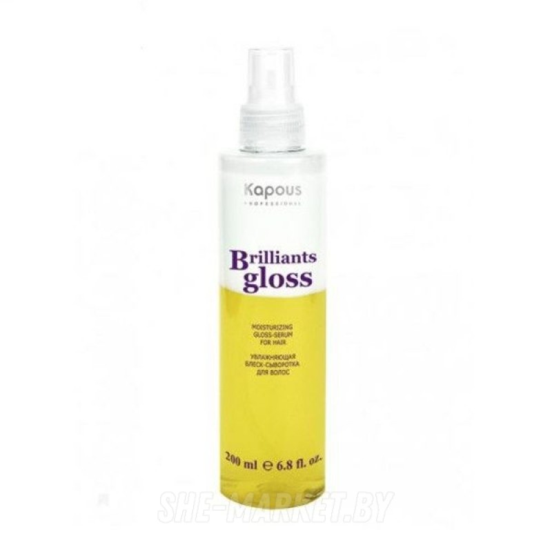 Kapous brilliants gloss увлажняющая блеск-сыворотка для волос Предназначена для ухода за натуральными и окрашенными волосами. Формула сыворотки с аргановым маслом не утяжеляет волосы, придает им натуральный блеск, увлажняет и питает. Сыворотка предотвращает спутывание волос и дает дополнительный уход за окрашенными волосами.Пнрнд нанесением спрей следует хорошо встряхнуть.Для придания блеска, можно наносить на сухие волосы.Увлажняющая блеск сыворотка Kapous brilliants gloss - эффективный спрей по уходу за волосами.