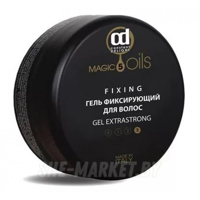 Гель сильной фиксации, рассчитанной на длительный период времени. Формула геля, состоящая из «5 Магических Масел»: - Макадамии, - Хлопка, - Жожоба, - Авокадо, - Арганы, питает волосы и возвращает им жизненную силу, энергию и блеск.При использовании на сухих волосах гарантирует сильную фиксацию.При использовании на влажных волосах с последующей сушкой феном придает эластичность и снижает чрезмерную пушистость.Применение: Нанести гель на сухие или влажные волосы, смоделировать укладку. В случае влажных волос высушить феном.